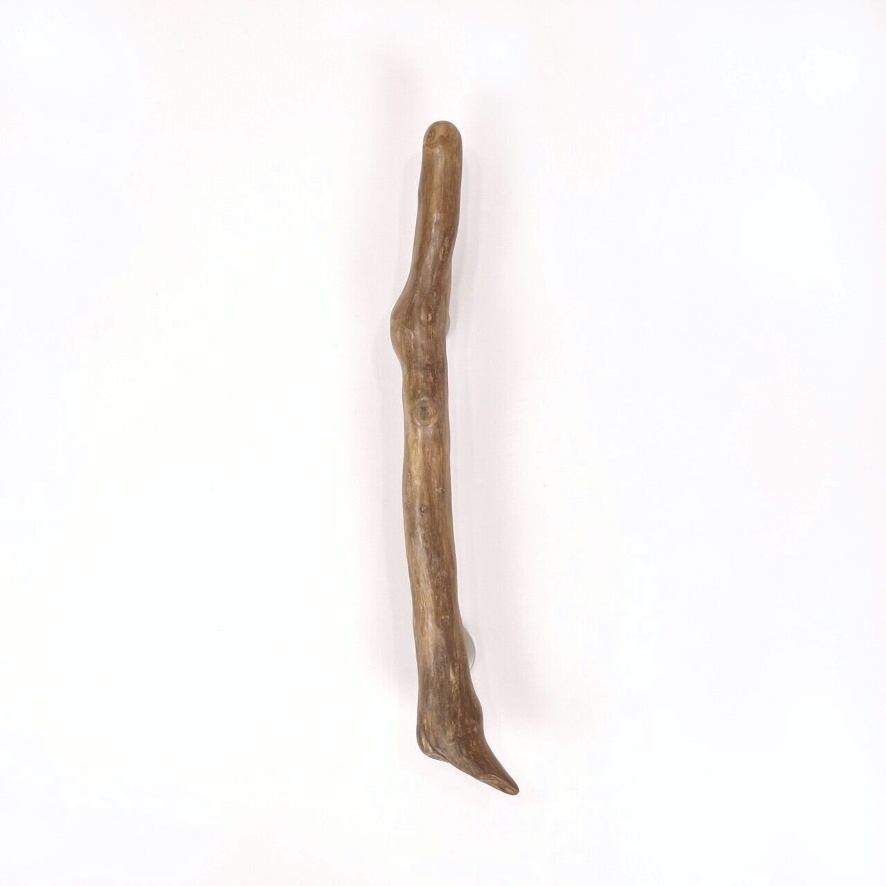 枝の流木、一方の先は 丸いながらも突き抜けるように伸び、もう一方の先端は斜めに折れてしまった跡を見せます。