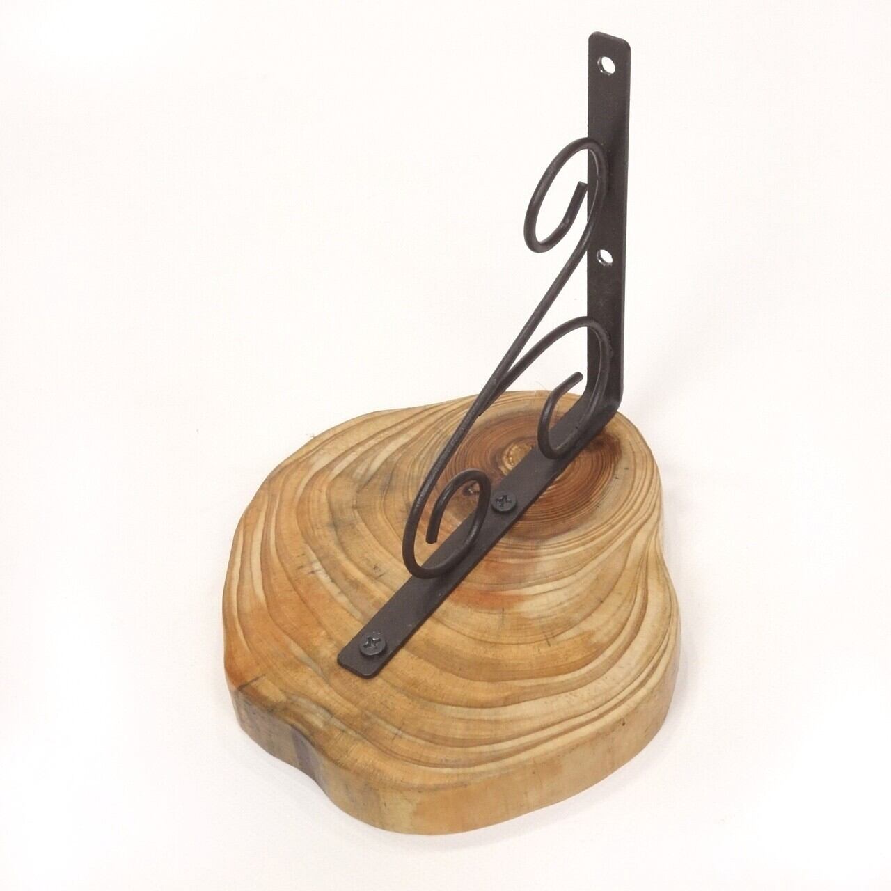丸太下にはおしゃれなダークブラウンのアイアン製L字金具を取り付け、かわいい飾り台となりました。