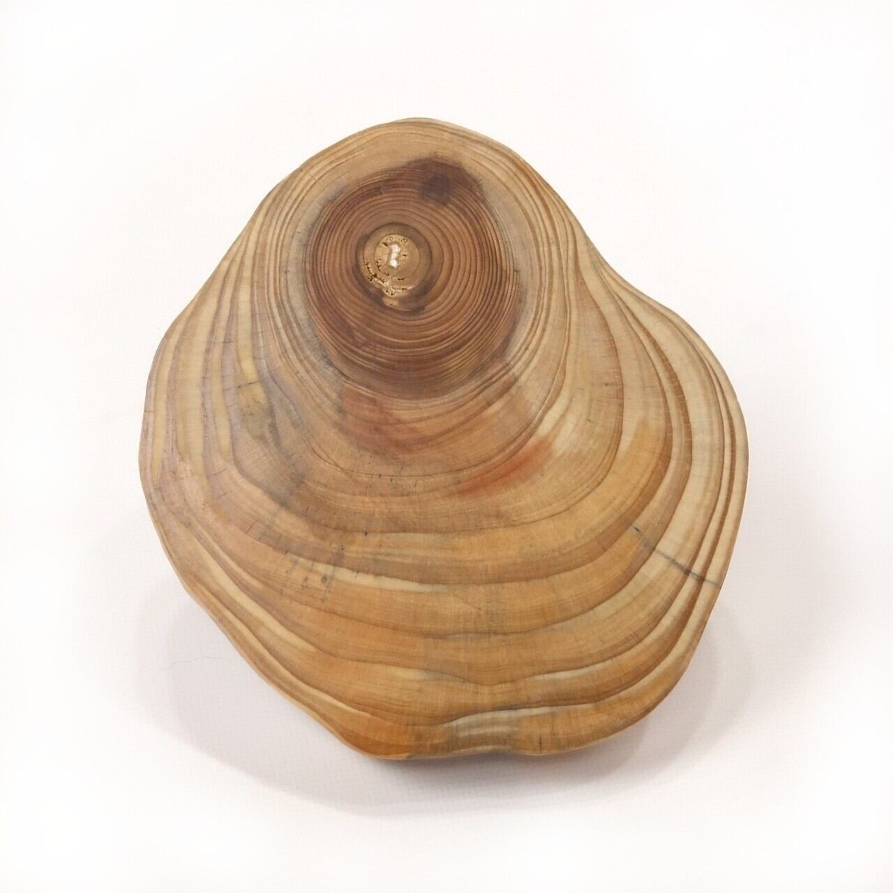 しもぶくれ梨型の丸太流木、渦巻く年輪も梨型に広がります。