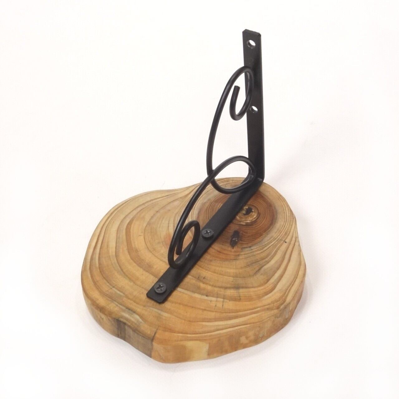 丸太下にはおしゃれなブラックのアイアン製L字金具を取り付け、かわいい飾り台となりました。
