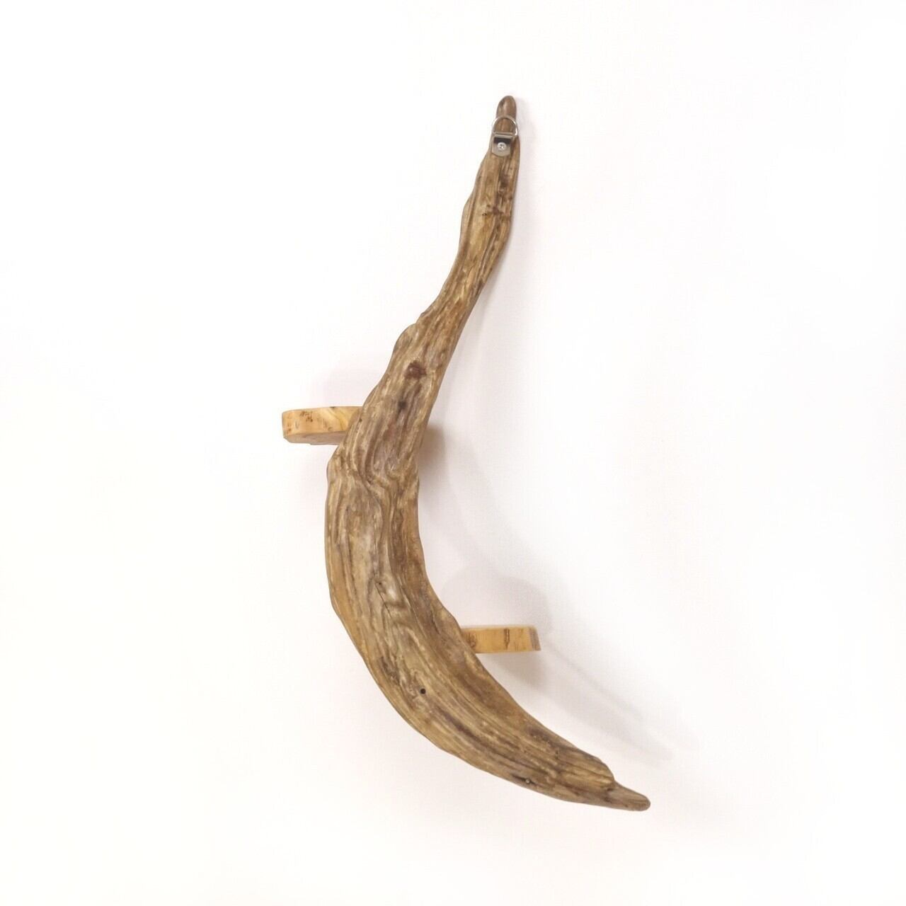 【温泉流木】個性的流木と丸太の壁掛け飾り棚007三日月 R120341
