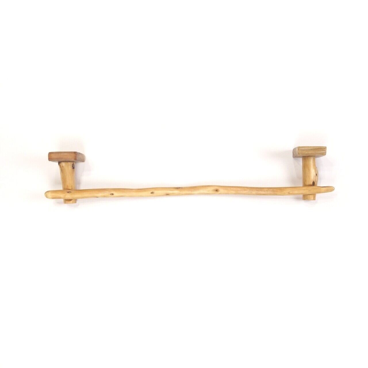 タオルを掛けるハンガー部は ゆる曲がりのある細枝流木、右端上部が削れにより薄くなり、流れていくような形状です。