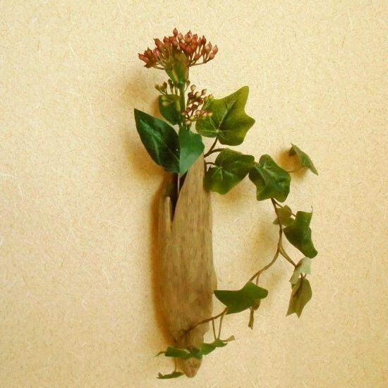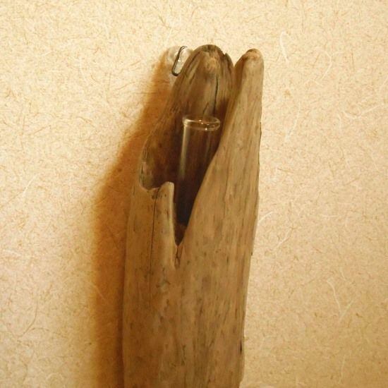 【温泉流木】流線型に磨かれた流木の花器 壁掛け一輪挿し花瓶 流木インテリア