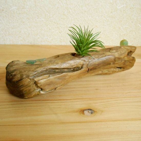 【温泉流木】カメレオン風グリーンスタンド エアープランツスタンド 流木インテリア