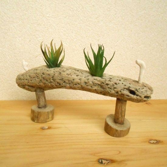 【温泉流木】2本の足とサンゴがかわいいナマコ型海流木のグリーンスタンド エアープランツスタンド 流木インテリア