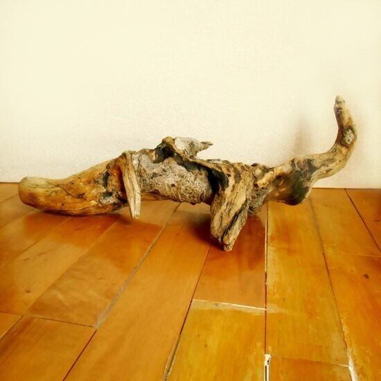 【温泉流木】恐竜みたいな木の皮付き流木 流木オブジェ 流木インテリア