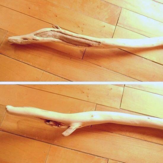 海で採集した枝の流木、白く長くすべすべの触感です。