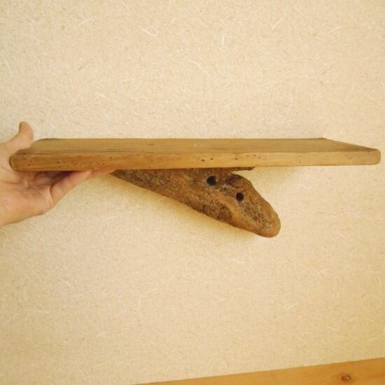 棚を壁に留める金具を流木に置き換え、2つの流木を組み合わせたウォールラックです。
