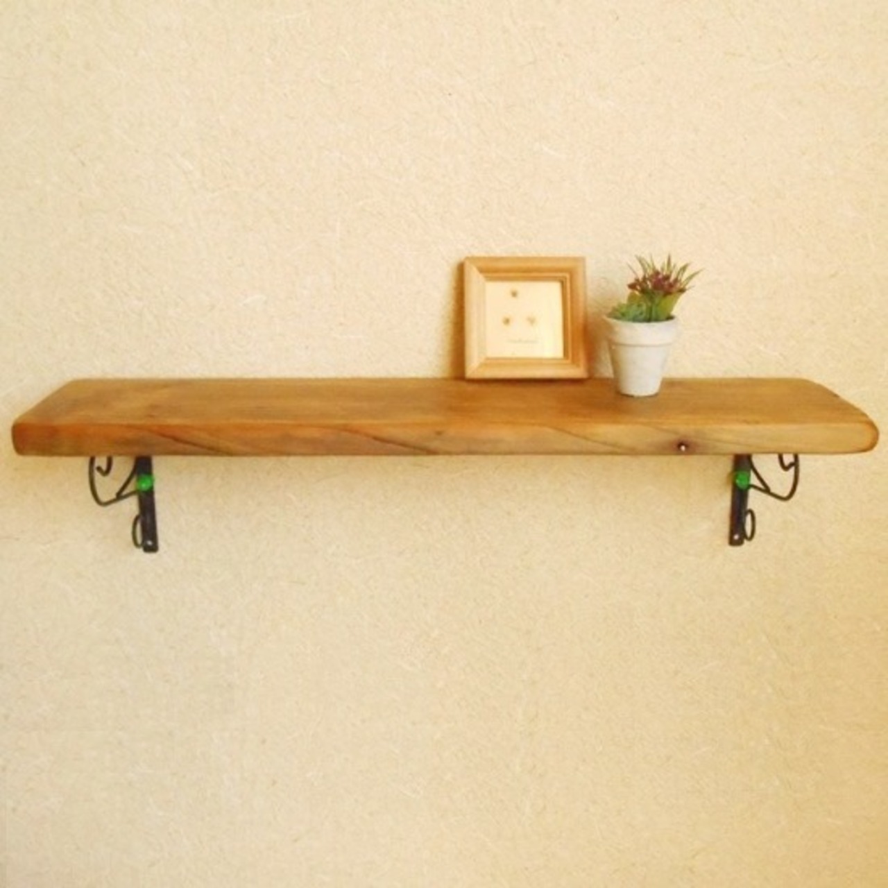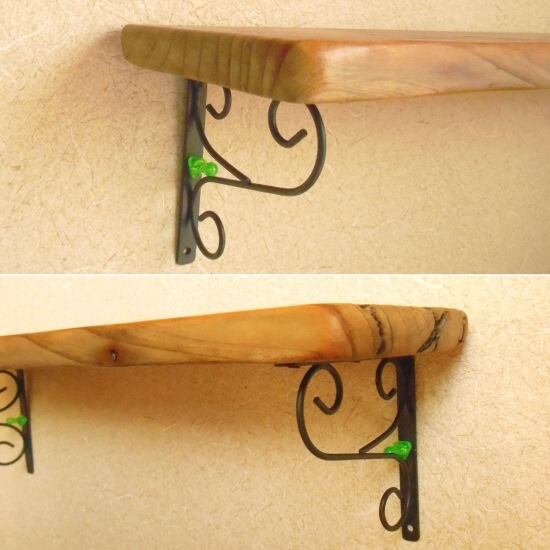流木の下におしゃれな金具を取り付け、壁掛け棚となりました。