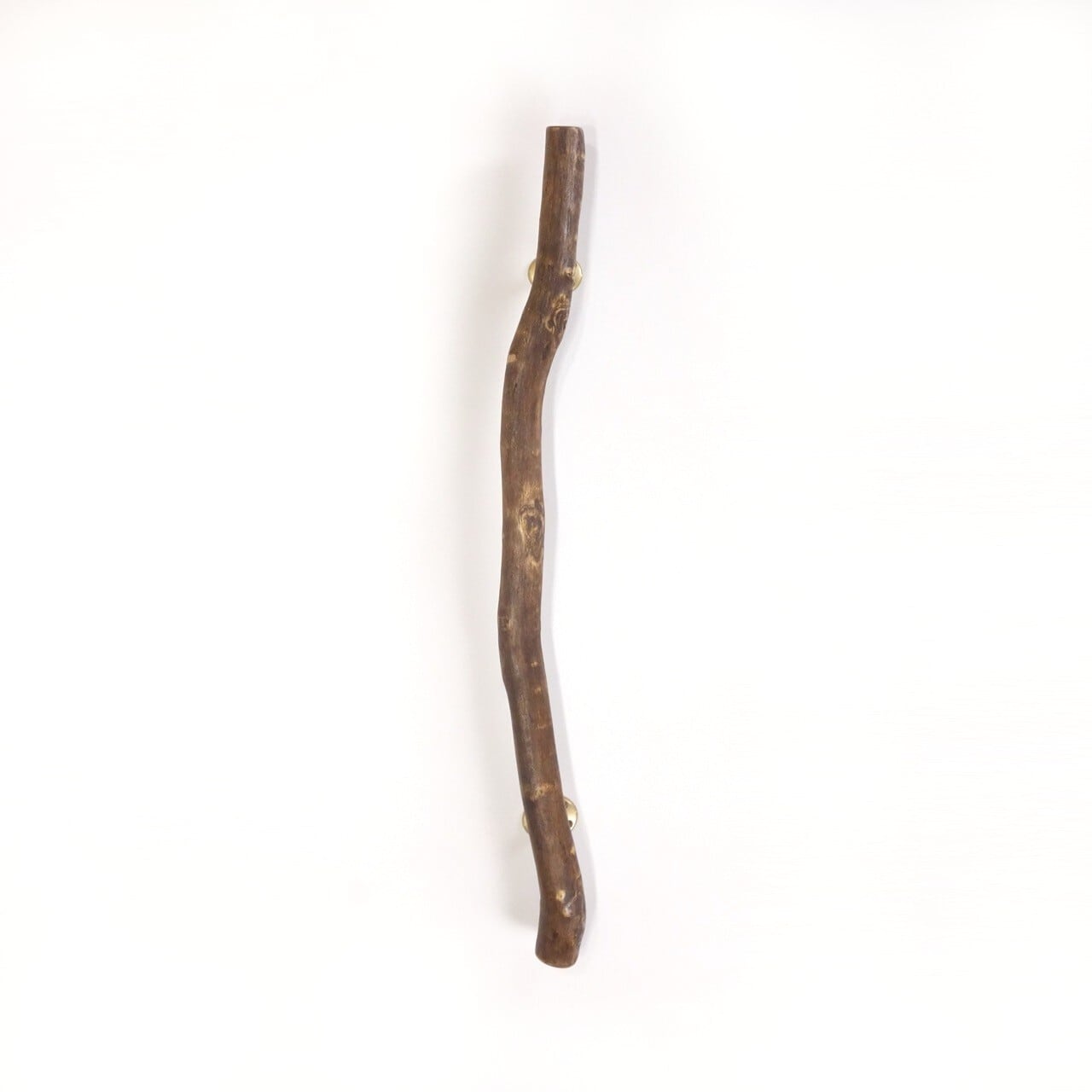 ゆるい曲がりを何度も経て伸びた枝の流木、曲がりのあるところには木の節があり、枝がそこに生えたことで 本流の枝に曲がりが生じた様子です。
