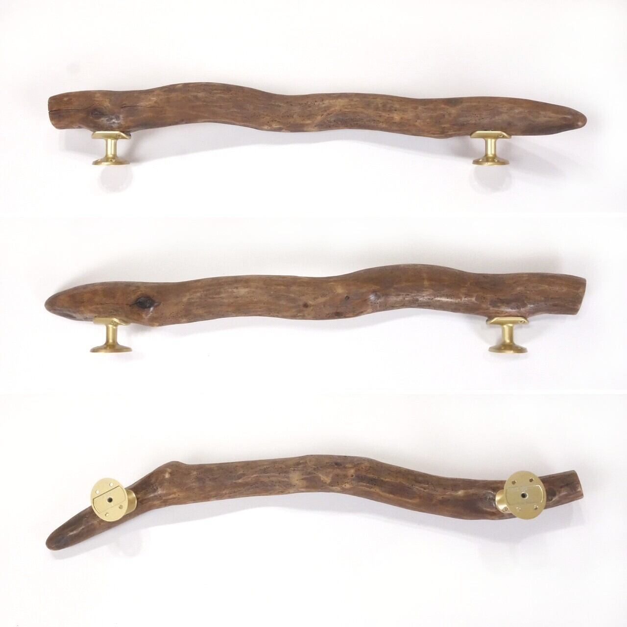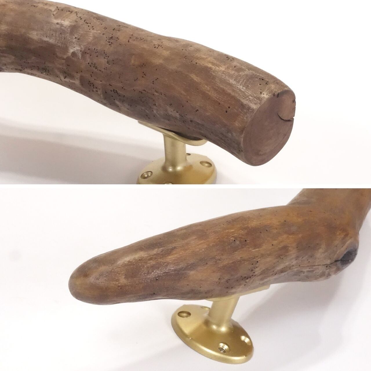【温泉流木】S字曲がり太め流木の柿渋塗りドアハンドル・手すり R110976