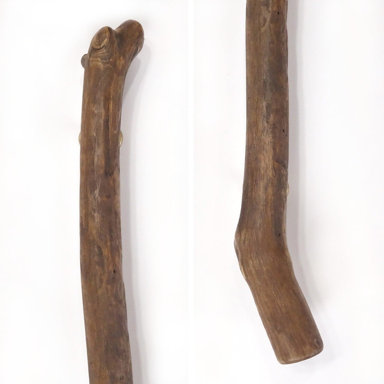 流木の曲がり部分外側には、複数の枝跡が見られ、枝が生えたことで反対側に曲がることになった様子です。