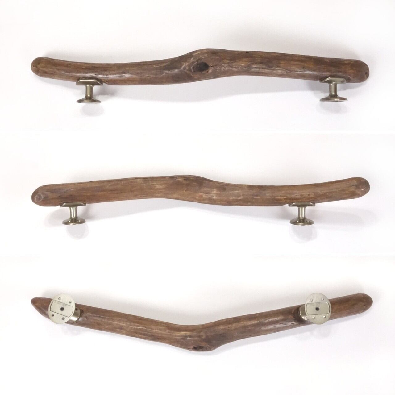 【温泉流木】くの字を描く流木の柿渋塗りドアハンドル・手すり R110979