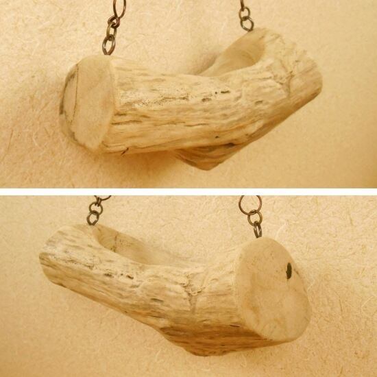 【温泉流木】丸いくさりとかわいい流木の吊り式小物入れ R040032