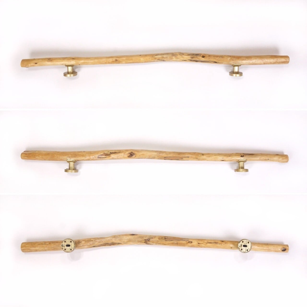 【温泉流木】ゆるやかに曲がる細長枝流木のドアハンドル・手すり 木製 自然木 流木インテリア