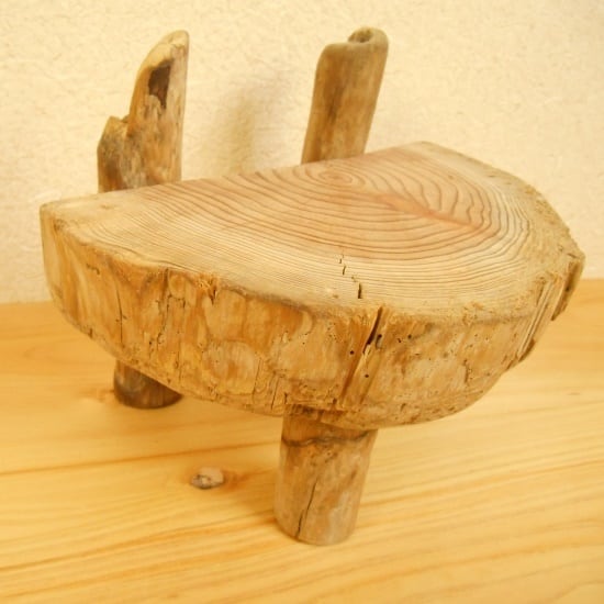 【温泉流木】何気ない足がかわいい半円丸太流木置き台 台座 流木インテリア