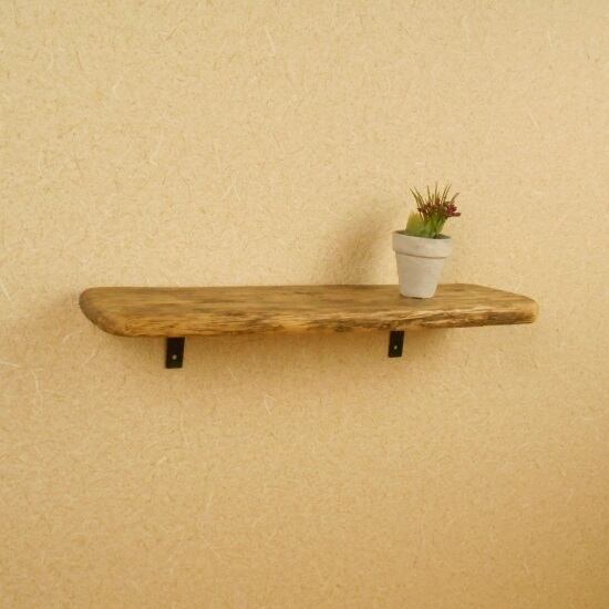 黒のL字金具を付けて、壁掛け棚に仕上げました。