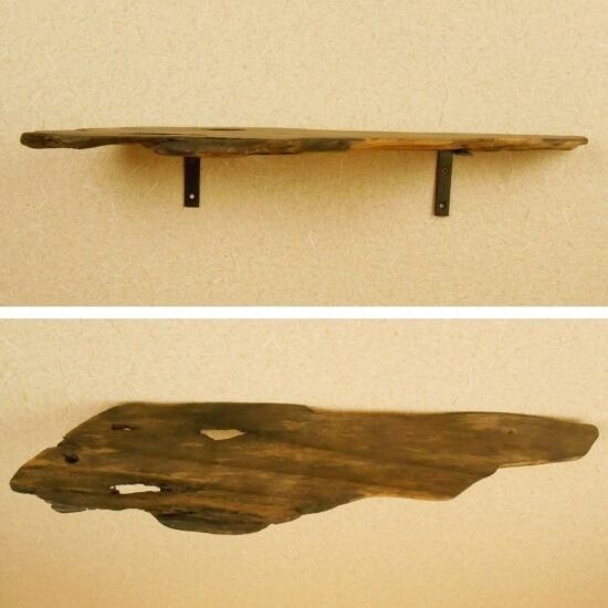 【温泉流木】薄く軽い渋味のある和風な流木壁掛け棚 ウォールラック 流木インテリア