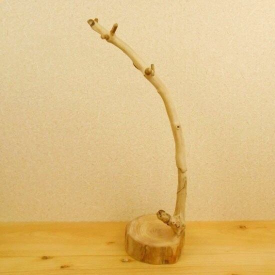 【温泉流木】木の皮つき枝流木と丸太台のアクセサリースタンド ジュエリースタンド 流木インテリア