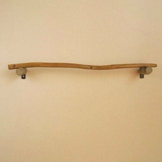 タオルを掛けるバーとなる流木は、比較的まっすぐですがゆるいうねりがあります。