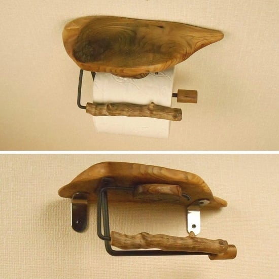 【温泉流木】押さえ枝付きラウンドラインの美しいトイレットペーパーホルダー 流木インテリア
