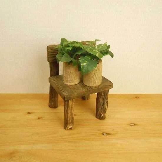 【温泉流木】レトロにかわいい椅子型流木花台スタンド003中・足太 R040065
