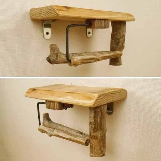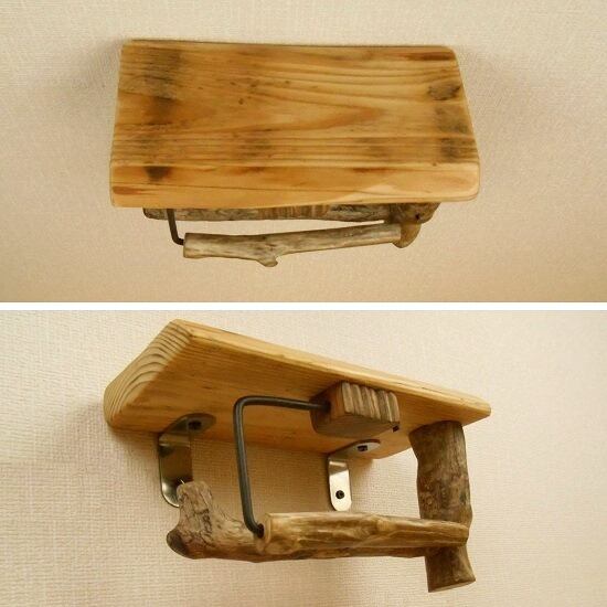 トイレットペーパーのホルダーの流木の先は、自然な枝です。