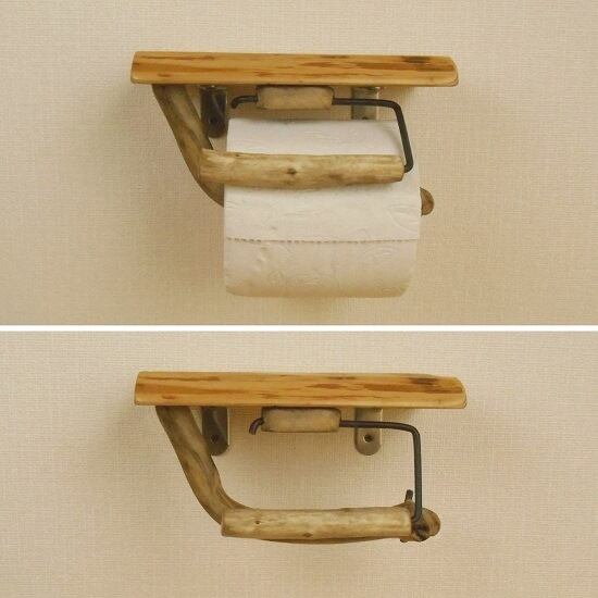 【温泉流木】そのまま流木が活きた押さえ付きトイレットペーパーホルダー 流木インテリア