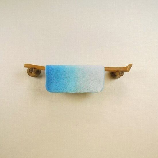 掛ける部分の幅は 約31cm、画像ではハンドタオルをかけていますが、フェイスタオルでは、平たく掛けて多少ギャザーとなるサイズです。