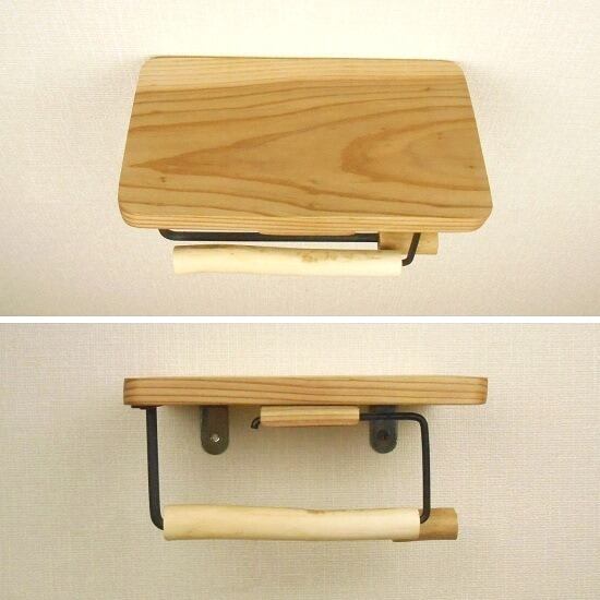 木製棚のナチュラルトイレットペーパーホルダー流木の押さえ付き003 I010013