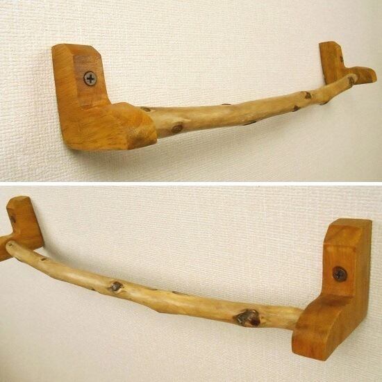 取り付け部もすべて流木の、素朴さにホッとするようなタオル掛けです。