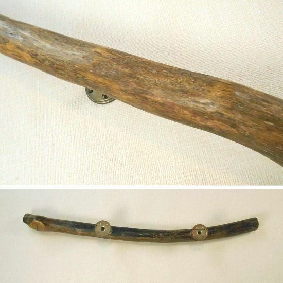 ゆるい湾曲のしっかりした枝の流木、ブラウンゴールドの金具を取り付け、手すり・ドアハンドルとして仕上げました。