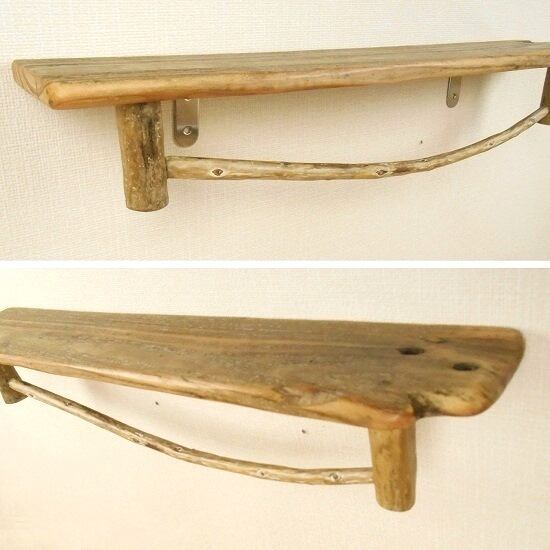 【温泉流木】釘穴の開いた棚付きロングサイズなタオル掛け タオルハンガー タオルラック 流木インテリア