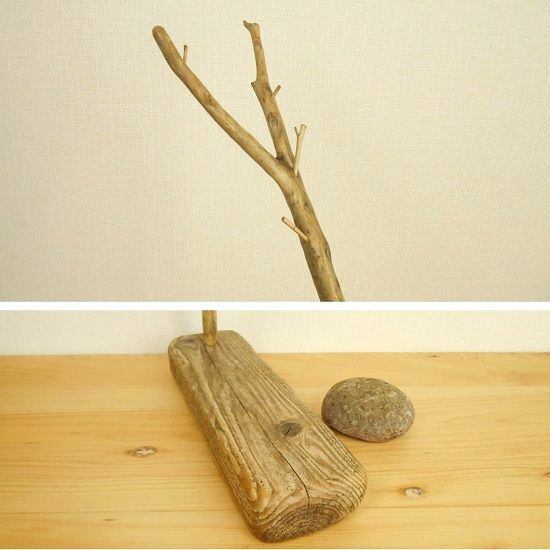【温泉流木】ななめに伸びる枝分かれ流木のフックスタンド風鈴スタンド アクセサリースタンド 流木インテリア