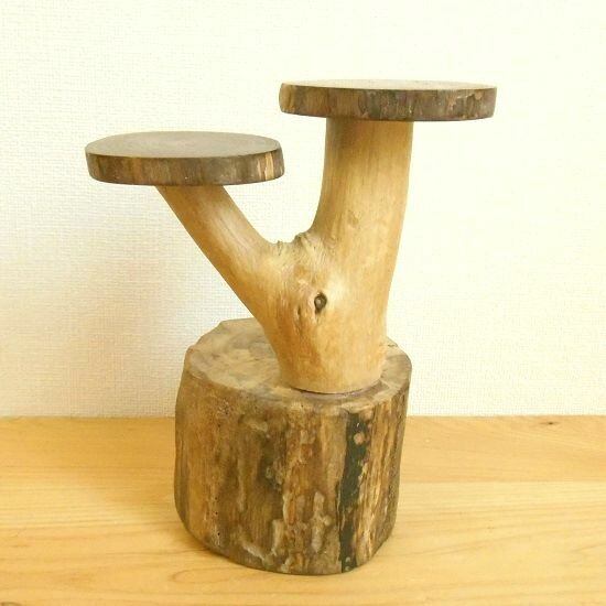 エンジュ輪切りのきのこ風かわいいミニ流木置台スタンド 流木インテリア