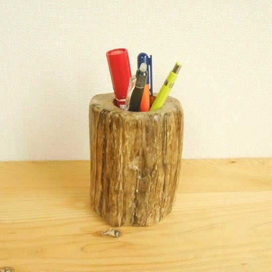 【温泉流木】ストライプの木目が美しいくり抜きペンスタンド もの置台 流木インテリア