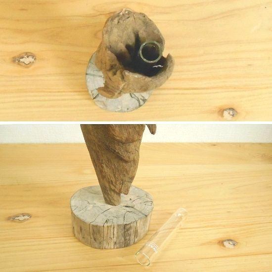 【温泉流木】丸太台座のミニミニ流木花器スタンド 一輪挿し 流木インテリア