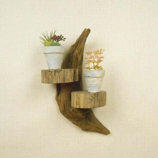 【温泉流木】ミニ丸太のかわいい壁掛け飾り棚002三日月 R070138