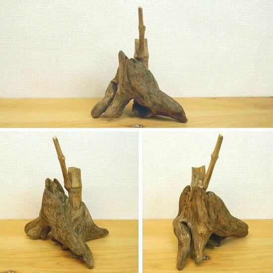 【温泉流木】変形流木と竹のかわいい一輪挿し 花器 流木インテリア