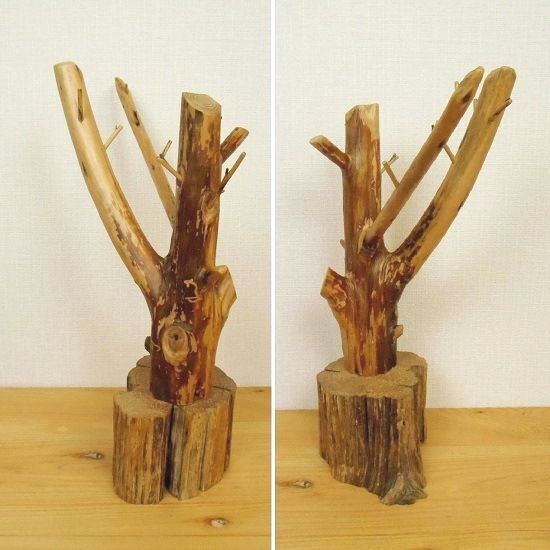 【温泉流木】しっかり枝と変わり丸太のフックスタンドアクセサリースタンド ジュエリースタンド 流木インテリア