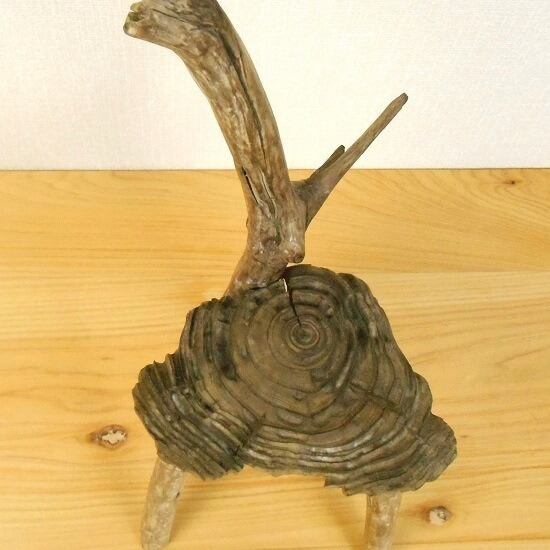 【温泉流木】美しい彫刻となった丸太の椅子型スタンド飾り台 置き台 流木インテリア