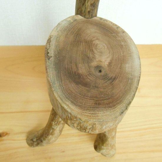 【温泉流木】曲がりのバランスが美しい楕円丸太の椅子型スタンド飾り台 花台 流木インテリア