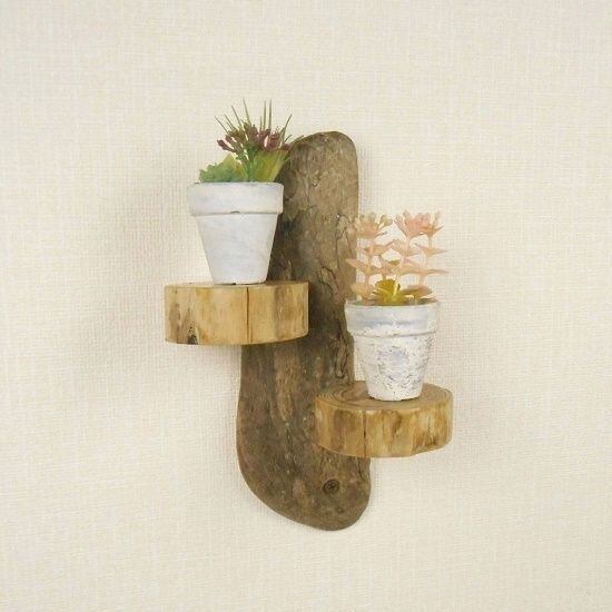 【温泉流木】ミニ丸太2段の吊り式壁掛けラック001不思議な柄 壁掛け棚 ウォールラック 流木インテリア