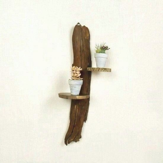 幹表面の流木とエンジュとイチョウがコラボした壁掛け飾り棚 壁掛けラック ウォールラック 流木インテリア