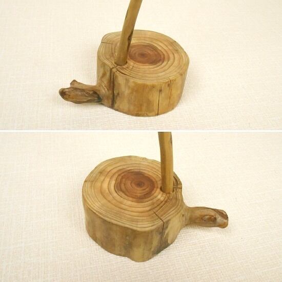かわいい丸太流木の土台に、繊細な流木の細枝を立てたフックスタンドです。