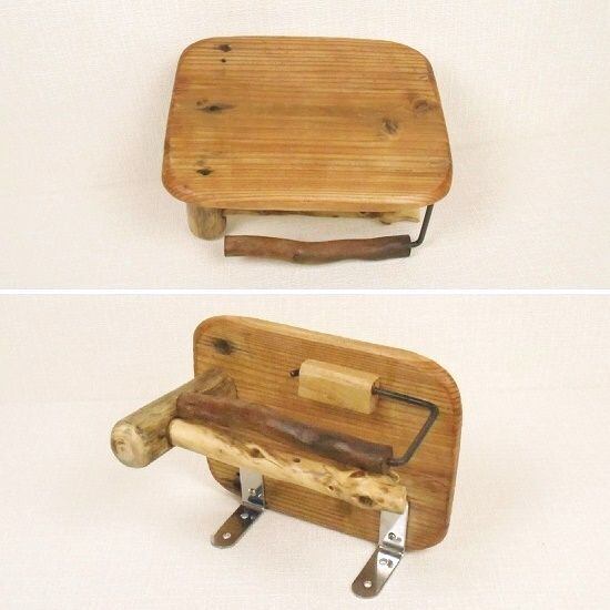 【温泉流木】釘穴とコーヒー豆のような木の節がある棚台とこげ茶の流木押さえ付きトイレットペーパーホルダー 流木インテリア