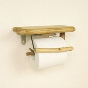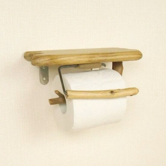【温泉流木】なめらかギザの明るい色の棚台と曲がり枝のホルダーが美しい押さえ付きトイレットペーパーホルダー R090050