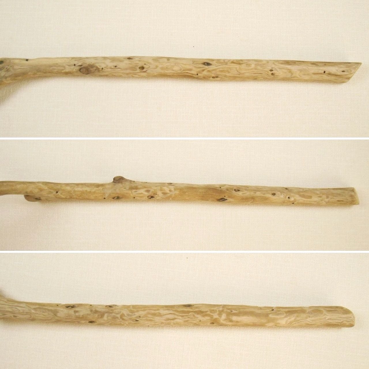 枝分かれした方が残った、くの字に曲がる枝の流木棒です。