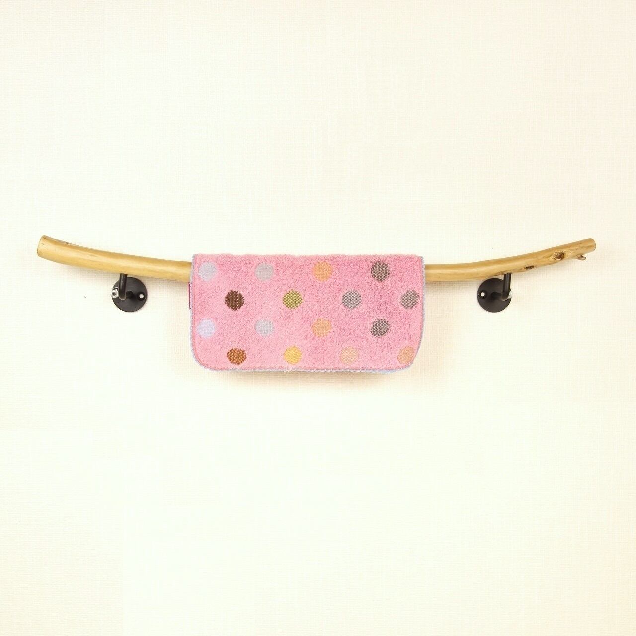 画像ではハンドタオルを掛けております。タオルを掛ける部分の幅は約 33.3cm、流木の径は 2cmです。