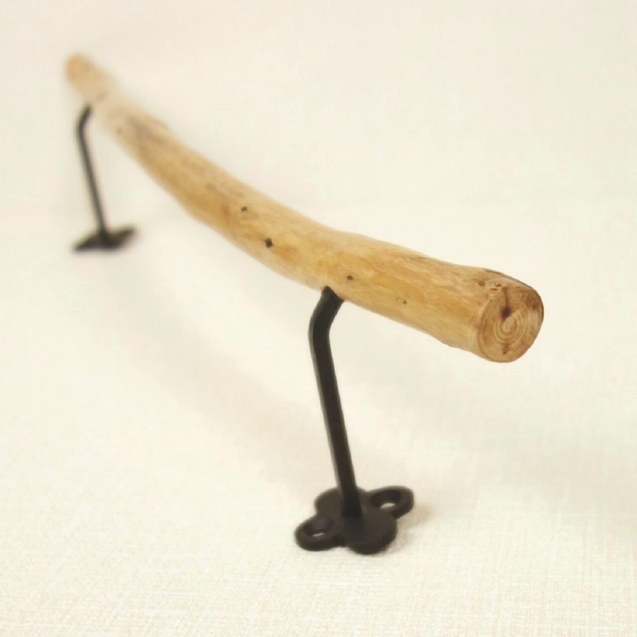 画像ではハンドタオルを掛けております。タオルを掛ける部分の幅は約 26.6cm、流木の径は 1.5cmです。